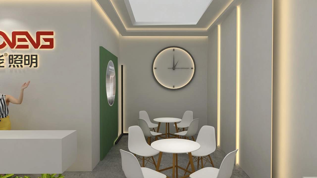 展臺設計搭建面積為72平,整體設計十分的簡潔大方,該展臺最大的亮點是其產品的隱藏化,擺脫了傳統的產品陳列擺放的展示方式,利用展臺設計,將產品融入到展臺的每一個角落,每一個發光燈帶都是使用了該企業的產品,雖然沒有明確展示確又無處不在,令會展觀眾能切身體驗該企業的產品,提高成交量。